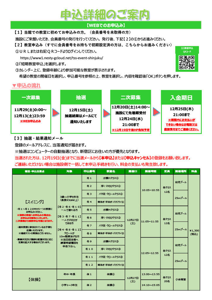 ※申込には必ず会員登録が必要となります。会員登録は施設にて承ります。