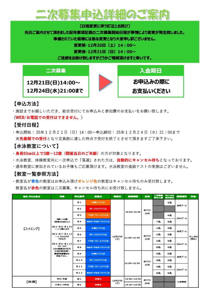 イベント情報EVENTS HOME > イベント情報 イベント情報イベント情報一覧 【2次募集のご案内】12月27日冬短期教室 2025年12月19日 平素より新宿スポーツセンターをご利用いただき、誠にありがとうございます。冬短期教室2次募集を12/21(日)14:00より行います。申込は施設先着となります。皆様のご応募、お待ちしております。 一覧に戻る: イベント情報一覧 アーカイブ 2025年 2024年 2023年 2022年 2021年