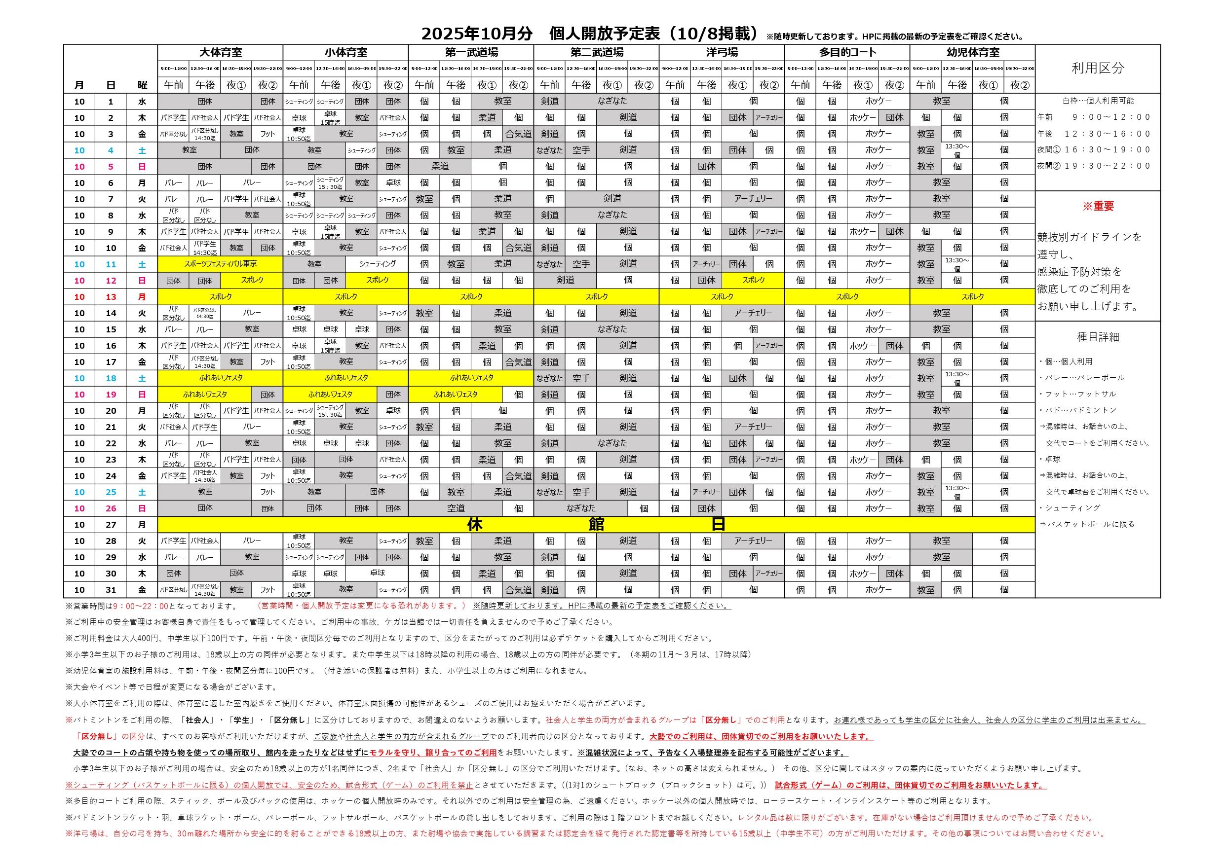 - 10/25~10/31 プール水抜き作業に伴う休業について