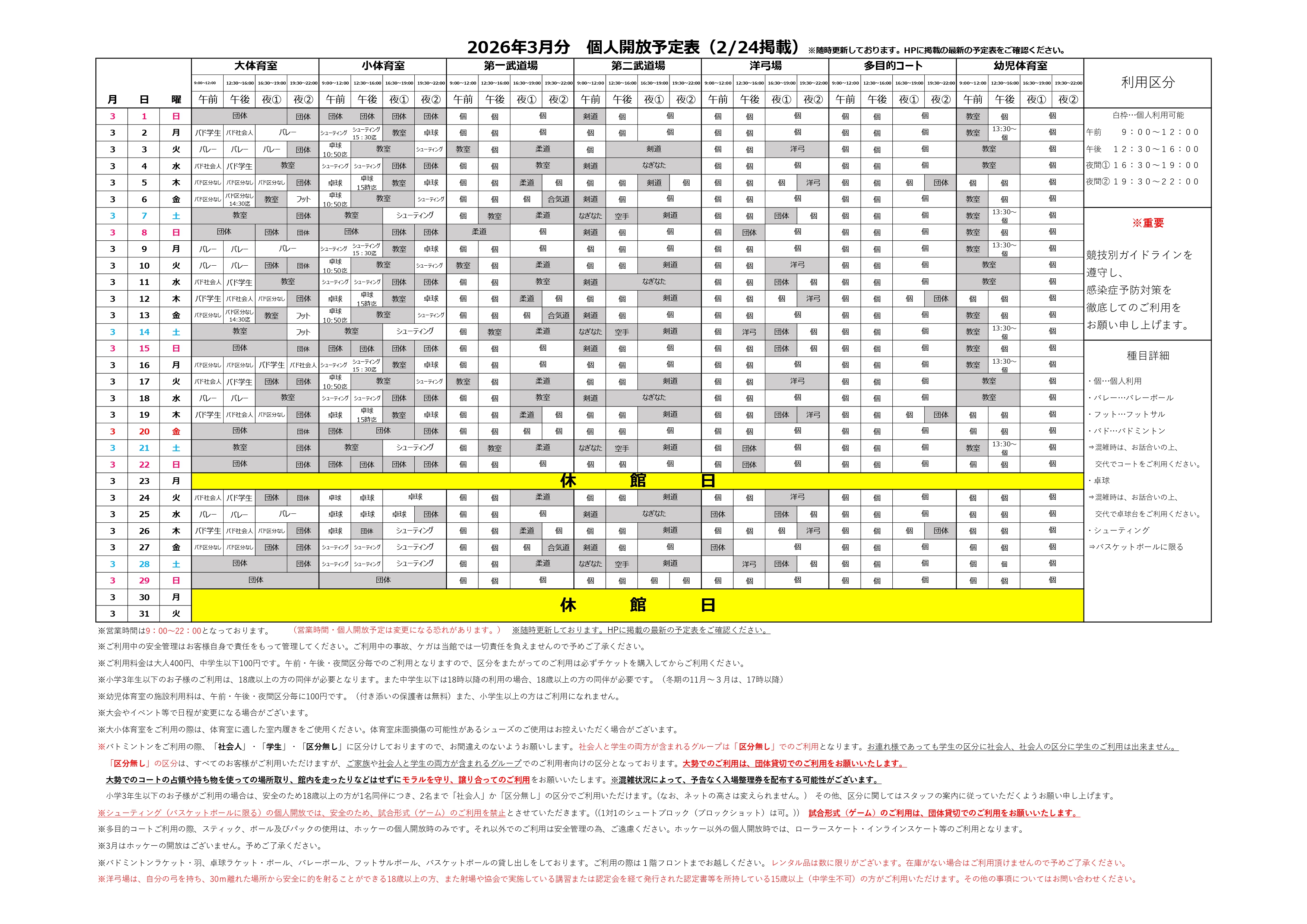 - 3月度個人開放予定表(2月24日掲載)