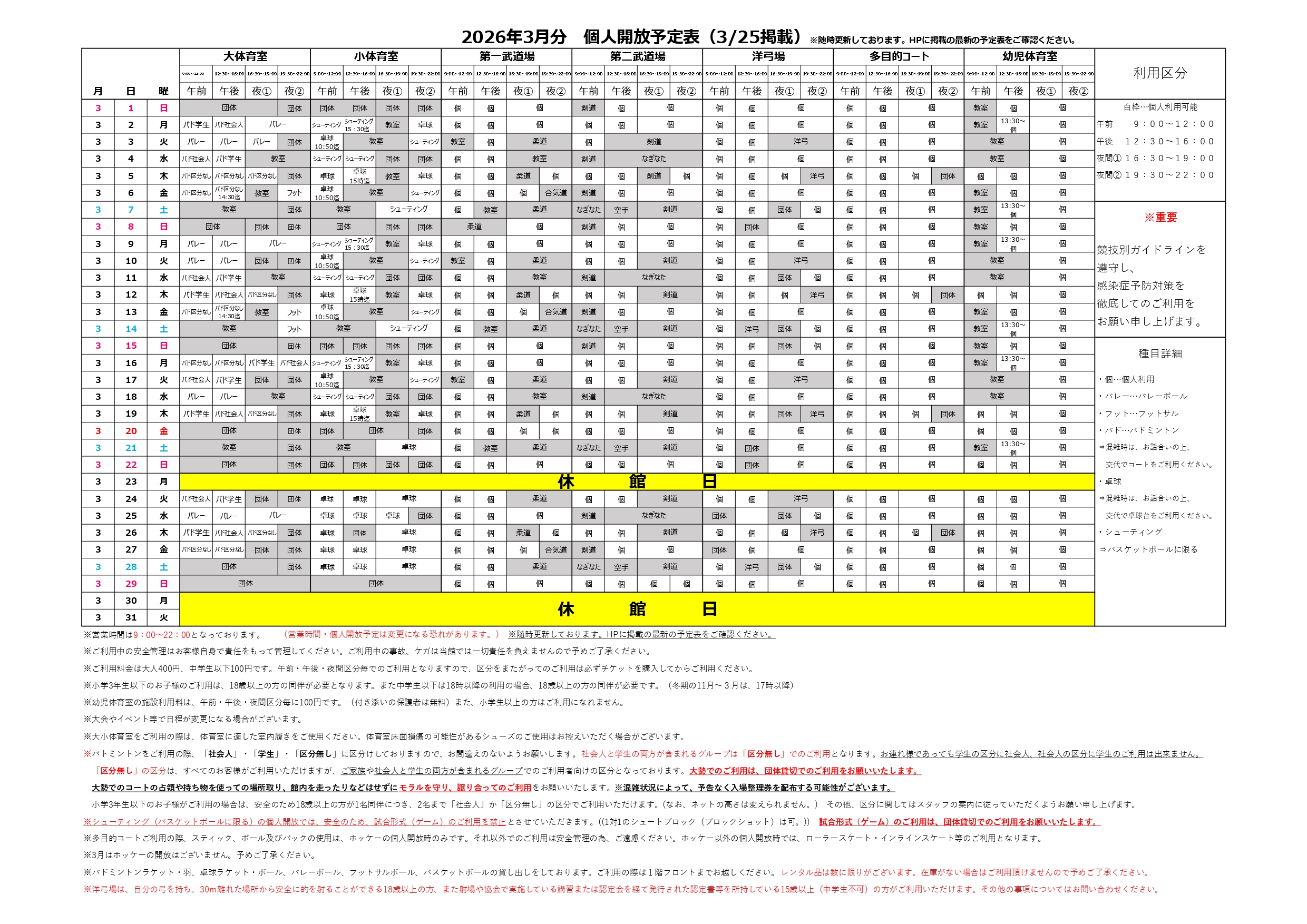 - 3月度個人開放予定表(3月25日掲載)
